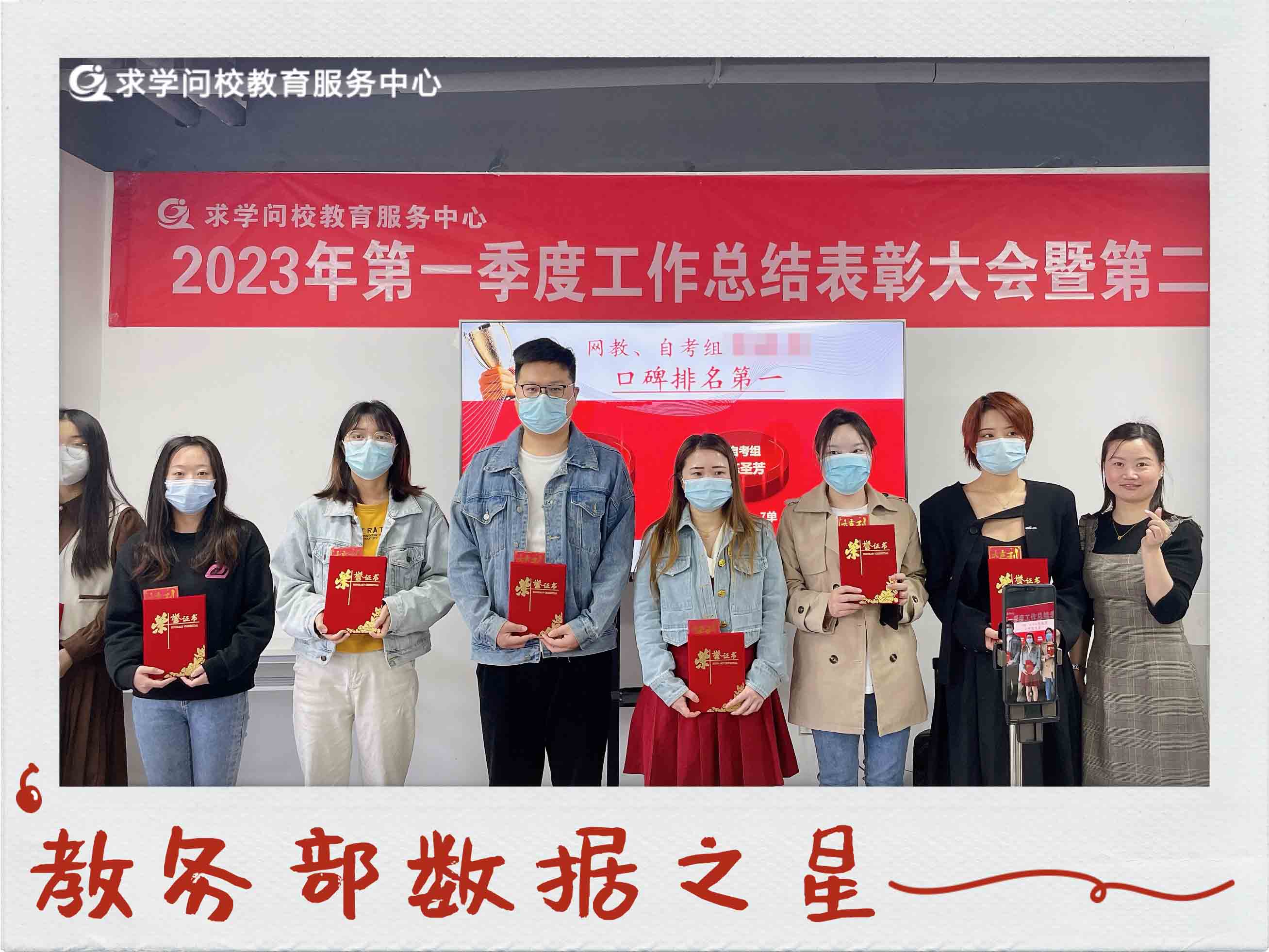 星光不問趕路人,時光不負有心人,2023年4月11日,求學問校教育服務中心召開了Q1季度工作總結暨表彰大會,會議由趙老師進行主持,頒獎的開始首先是由各部門領導總結了Q1季度各項工作取得的成果以及對Q2季度工作的規(guī)劃。