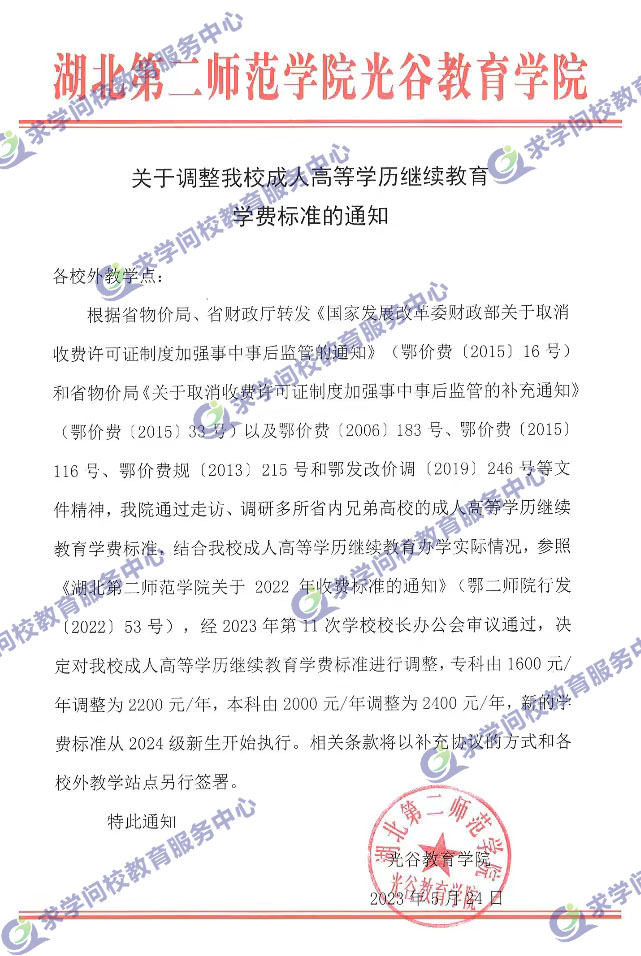 (湖北第二師范學(xué)院續(xù)費(fèi)調(diào)整通知)