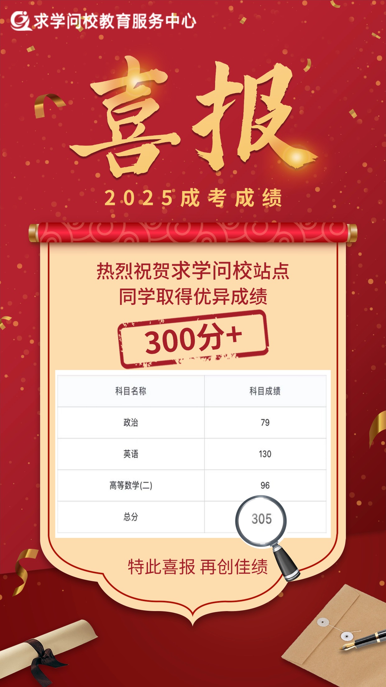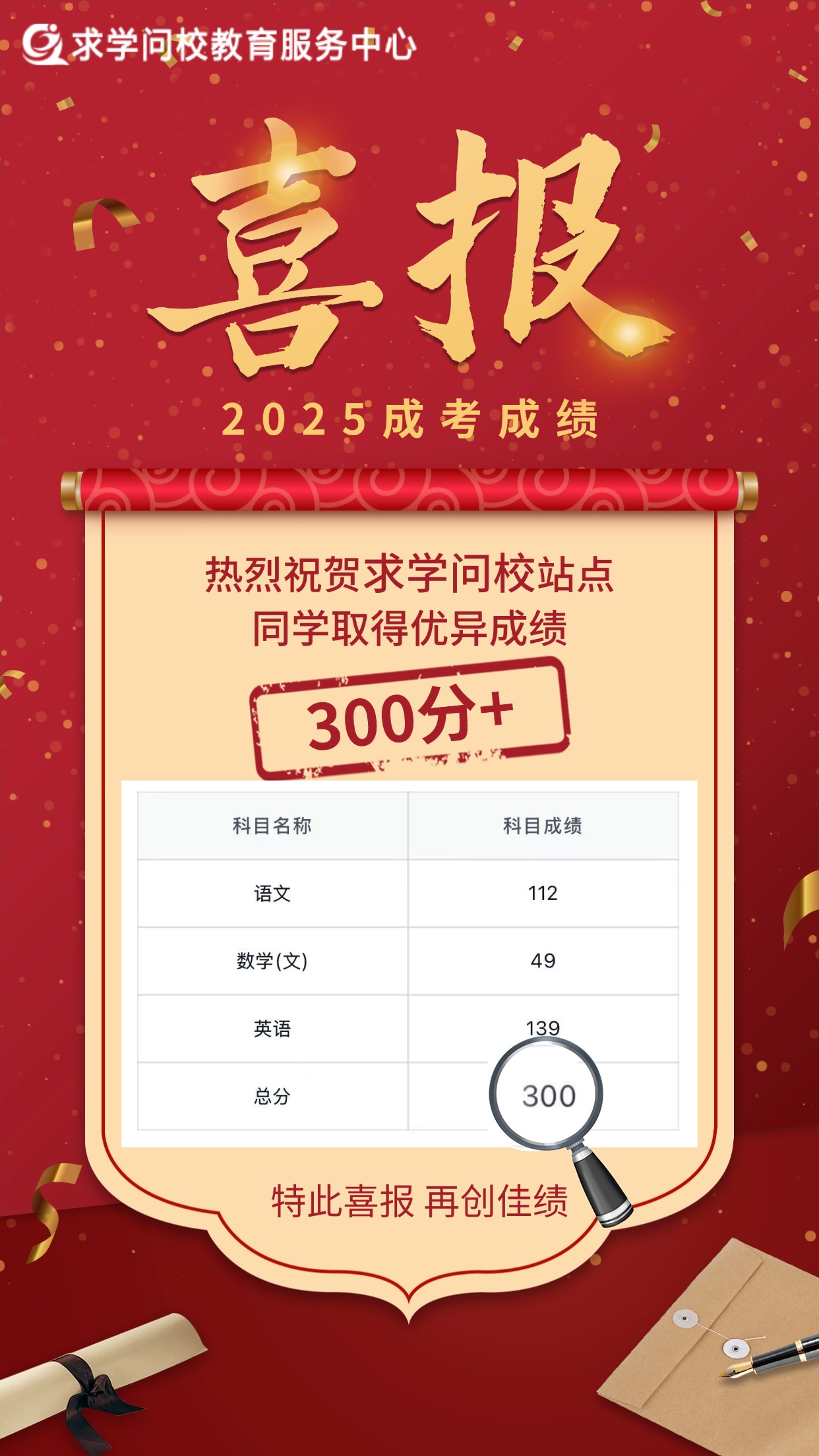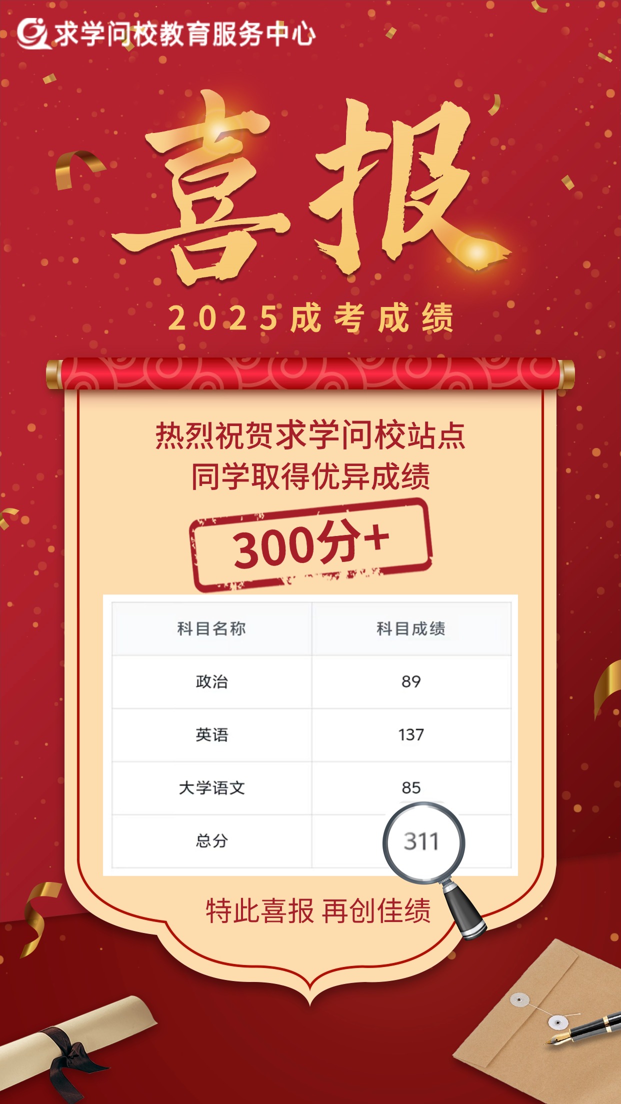 金秋送爽,碩果盈枝。在2025年全國成人高校招生統(tǒng)一考試中,求學問校站點學員不負眾望,奮勇拼搏,再次取得了輝煌的成績!在此,我們懷著無比激動和自豪的心情,向全體取得優(yōu)異成績的學員表示最熱烈的祝賀!